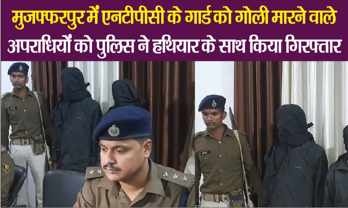 मुजफ्फरपुर जिले के कांटी के एनटीपीसी पॉवर प्लांट में 9 जनवरी को एनटीपीसी के गार्ड को गोली मारने के मामले में शामिल दो अपराधियों को पुलिस ने एक देसी पिस्तौल और चार कारतूस के साथ गिरफ्तार किया है। पुलिस की छापेमारी के दौरान इन अपराधियों का तीसरा सहयोगी बाइक लेकर भागने में सफल रहा। जिसकी तलाश में पुलिस की छापेमारी जारी है।
