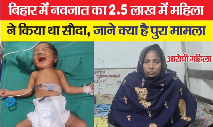 सुगौली की पुलिस को जानकारी दी गई, जिसके बाद परिजनों के साथ पहुंची पुलिस ने अस्पताल से नवजात को बरामद किया और आरोपी महिला को गिरफ्तार किया है। महिला ने पुलिस को बताया है कि बच्चे को ठंडा लग रहा था, उसे लगा बच्चा नहीं बचेगा, तो वह सुगौली में जीवन ज्योति अस्पताल में भर्ती करा दिया। वह बेचने के लिए बच्चे को लेकर गई थी। सौदा ढ़ाई लाख में हो गया था। डेढ़ लाख एडवांस मिल गया था, लेकिन वह अपने मंसूबे में कामयाब नहीं हुई। बच्चा किससे बेचा था यह पता नहीं है। वह पकड़ाएगा तभी पता नहीं चल पाएगा।