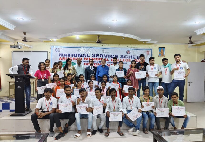 गया ।अनुग्रह मेमोरियल महाविद्यालय के राष्ट्रीय सेवा योजना के सात दिवसीय स्पेशल कैंप में भाग लेने वाले सभी स्वयंसेवकों को सहभागिता प्रमाण पत्र वितरण समारोह का आयोजन किया गया है।स्वयंसेवकों के साथ-साथ इस समारोह में महाविद्यालय के प्रभारी प्राचार्य अनंत कुमार सिन्हा, एन एस एस के कार्यक्रम पदाधिकारी डॉ. श्वेता सिंह, हिंदी विभाग के प्राध्यापक डॉ. उमाशंकर सिंह, राष्ट्रपति सम्मान से सम्मानित मैक्स अवस्थी , सामाजिक कार्यकर्ता सूरज कुमार आदि उपस्थित थे।