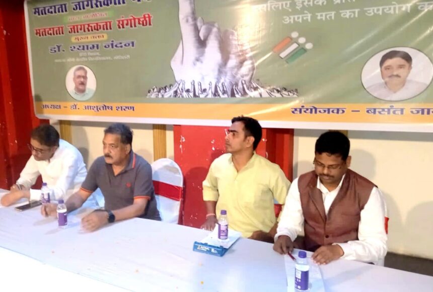 मोतिहारी : मतदाता जागरूकता मंच ने शरण कॉम्प्लेक्स में मतदाता संगोष्ठी का आयोजन किया ।, संगोष्ठी का उदघाटन डॉ . श्यामा नंदन हिन्दी विभाग महात्मा गांधी केंद्रीय विश्व विद्यालय ,मोतिहारी ने किया । कार्यक्रम की अध्यक्षता डॉक्टर आशुतोष शरण ने की ।उक्त अवसर पर कार्यक्रम के संयोजक बसन्त जायसवाल मॉडर्न पब्लिक स्कूल के संस्थापक ने आगत अतिथियो का स्वागत किया । कार्यक्रम के मुख्य वक्ता श्यामा नंदन ने अपने संबोधन में कहा कि देश के सभी मतदाता मतदान के दिन अपना मतदान जरूर करे ।चुकि लोकतंत्र की असली शक्ति आपका मत ही है इसलिए आप जागरूक बने और अपने मत का प्रयोग राष्ट्रहित में करे । कार्यक्रम की अध्यक्षता करते हुए डॉक्टर आशुतोष शरण ने कहा कि मतदान के लिए प्रत्येक व्यक्ति अपने देश के प्रत्येक चुनाव में भागीदारी की शपथ लेते हैं। चुनाव लोकतंत्र का अहम हिस्सा है ,मतदान से कोई भी बंचित नहीं हो इसलिए सभी को समय अवधि में मतदान करना चाहिए, ताकि मतदान का प्रतिशत अधिक से अधिक हो। इसके लिए प्रत्येक व्यक्ति से आग्रह करना चाहिए तथा उन्हें जागरूक करने के लिए प्रचार के सभी साधनो का उपयोग करने की आवश्यकता है, खास कर उदासीन मतदाताओं को जागरूक करने के लिए और उन्हें प्रेरित करना चाहिए। हमारा एक वोट देश का भाग्य बदल सकता है और व्यर्थ मतदान देश के लिए समस्या पैदा कर सकता है,इस अवसर पर मतदात जागरूकता मंच में पधारे गणमान्य मतदाताओ ने अपने अपने विचार व्यक्त किए ।इस अवसर पर रवि शंकर वर्मा ,सतीश चन्द्र दीपक, जितेंद्र त्रिपाठी ,अरबिंद कुमार ने अपने अपने विचार व्यक्त किये। कार्यक्रम में मोतिहारी लोक सभा क्षेत्र से आए लोगो ने राष्ट्रीयता से ओत प्रोत होकर राष्ट्र हित में मतदान करने की आवश्यकता बतलाई।