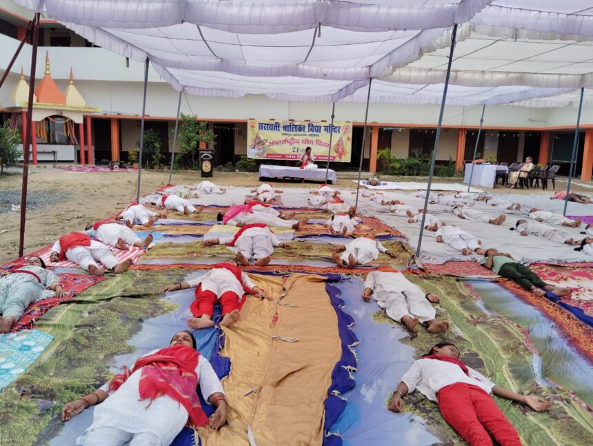 बलिया। नगर में स्थित डॉ. रामविचार रामरती सरस्वती बालिका विद्या मंदिर रामपुर उदयभान, बलिया में प्रतिवर्ष की भांति इस वर्ष भी 21 जून 2024 को अंतर्राष्ट्रीय योग दिवस का कार्यक्रम बड़े ही उत्साह पूर्वक मनाया गया | कार्यक्रम का शुभारंभ माँ ज्ञानदायिनी मंदिर में अतिथिगण द्वारा दीप प्रज्वलन एवं पुष्पार्चन करके किया गया। कार्यक्रम में मुख्य अतिथि डॉ. नीलम सिंह (डेंटिस्ट) तथा विशिष्ट अतिथि के रूप में अनुज स्वरागी जी (प्रतिष्ठित समाज सेवी तथा बिजनेसमैन) कार्यक्रम अध्यक्ष के रूप में मा. अक्षय ठाकुर जी (शिशु शिक्षा समिति गोरक्ष प्रान्त के उपाध्यक्ष) विद्यालय की कोषाध्यक्ष वाणिका अग्रवाल जी, मा. अनिल जी, ओम प्रकाश जी तथा विद्यालय की यशस्वी प्रधानाचार्य उमा दीदी जी द्वारा आये हुए सभी गणमान्य का परिचय कराया गया ।तत्पश्चात संगीताचार्य जया दीदी तथा वंदना की बहनों द्वारा सरस्वती वंदना कराई गई, ब्रह्मनाद, योग प्रार्थना के साथ शारीरिक प्रमुख अंजू दीदी तथा उनकी सहायक मालती दीदी द्वारा योग प्राणायाम का कार्यक्रम प्रारंभ किया गया।कार्यक्रम के मुख्य अतिथि मा. डॉ. नीलम दीदी ने योग दिवस पर प्रकाश डालते हुए कहा कि इस व्यस्ततम जीवन शैली में योग ही है जो हमें स्वस्थ रख सकता है। योग अपनाकर के के ही हम अपने शारीरिक, मानसिक, बौद्धिक व आध्यात्मिक स्तर को सुधार सकते हैं “योग अपनाने का करें संकल्प, स्वस्थ जीवन का यही विकल्प “||कार्यक्रम के विशिष्ठ अतिथि मा. अनुज जी द्वारा कहा गया योग क्या है?, पांच मूलभूत तत्व हमारे शरीर के किन किन भागों से जुड़े हैं। इस बिंदु पर विस्तार से जानकारी दी तथा कार्यक्रम के अध्यक्ष माननीय अक्षय जी द्वारा आशीर्वचन में विद्यालय परिवार को शुभकामना देते हुए योग प्रदर्शन कार्यक्रम की सराहना की | सामूहिक योग कार्यक्रम में कुल संख्या 103 रहीं।इस अत्यंत शुभ अवसर पर माननीय अमित अग्रवाल जी (प्रतिष्ठित व्यावसायिक व समाजसेवी) द्वारा एक वाटर कूलर का सहयोग प्रदान किया गया । विद्यालय परिवार तथा विद्यालय के यशस्वी प्रबंधक मा. सरदार बलजीत जी तथा विद्यालय की यशस्वी प्रधानाचार्य उमा दीदी ने उनका बहुत-बहुत आभार व्यापित किया कार्यक्रम के अंत में संचालनकर्ता आचार्य खुशबू दीदी द्वारा आभार प्रकट किया गया तथा कल्याण मंत्र के द्वारा कार्यक्रम का समापन किया गया इसी अवसर पर सभी आचार्य / आचार्य छात्र बहने तथा कर्मचारी गण उपस्थित रहे तथा सभी ने हर्षोल्लास के साथ योग दिवस कार्यक्रम संपन्न कराया ।