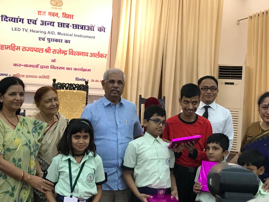 पटना,संवाददाता। महामहिम राज्यपाल राजेन्द्र विश्वनाथ आर्लेकर द्वारा राजभवन में महिला इमदाद कमेटी, राजभवन द्वारा आयोजित एक भव्य कार्यक्रम में दिव्यांग बच्चों सहित अन्य बच्चों को पुरस्कार, सम्मान और तो तोहफा वितरित किया गया। कार्यक्रम की शुरुआत राष्ट्र गान से हुई। इसके बाद दीप प्रज्वलित किया गया। इसके पहले महिला इमदाद कमेटी की उपाध्यक्ष ममता मेहरोत्रा ने महामहिम राज्यपाल को बूके देकर स्वागत किया। राज्यपाल के प्रधान सचिव श्री रॉबर्ट एल. चोंग्थू और कमेटी के वरिष्ठ सदस्यों का भी स्वागत किया गया।