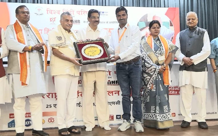 मोतिहारी : नई दिल्ली मैं आयोजित विश्व हिंदी परिषद के तत्वावधान में युग पुरुष श्री अरविंद : हिंदी भाषा और विकसित भारत विषयक दो दिवसीय अंतरराष्ट्रीय सम्मेलन का आयोजन 25 एवं 26 जुलाई, 2024 को किया गया। हिंदी के प्रचार प्रसार में उत्कृष्ट कार्य के लिए डॉ नन्दकिशोर साह को सम्मेलन के दूसरे दिन शुक्रवार को परिषद की ओर से श्री कंभमपाठी हरिबाबू , महामहिम राजपाल, मिजोरम के कर कमलों द्वारा प्रतीक चिन्ह देकर सम्मानित किया गया।