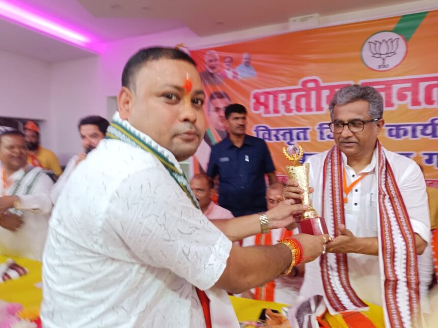 गया।भारतीय जनता पार्टी विस्तृत जिला कार्य समिति बैठक गया जिला के अंतर्गत इमामगंज में आहूत की गई है इस बैठक में बिहार सरकार के उद्योग एवं पर्यटन मंत्री एवं जिला प्रभारी मंत्री नीतीश मिश्रा बिहार सरकार के वन एवं पर्यावरण मंत्री सह सहकारिता मंत्री डॉ प्रेम कुमार प्रदेश संगठन प्रदेश महामंत्री शिवेश राम, राजेश वर्मा, साहित प्रदेश एवं जिला के लोग इसका समिति में शामिल हुए मुझे भी मंचासीन होने का स्वभाग प्राप्त हुआ है।मेरे द्वारा किसान मोर्चा के क्षेत्रीय के साथ संयोजक डॉ मनीष पंकज मिश्रा के द्वारा मंच पर मंचासीन नीतीश मिश्रा, डा प्रेम कुमार, को अंग बस्त्र मोमेंटो देकर स्वागत किया है मुझे दोनों उपरोक्त मंत्री के द्वारा स्वागत करने के लिए धन्यवाद किया आज के बैठक में जिला उपाध्यक्ष राजेंद्र प्रसाद अधिवक्ता, जिला मीडिया प्रभारी संतोष ठाकुर ने भी स्वागत किया है