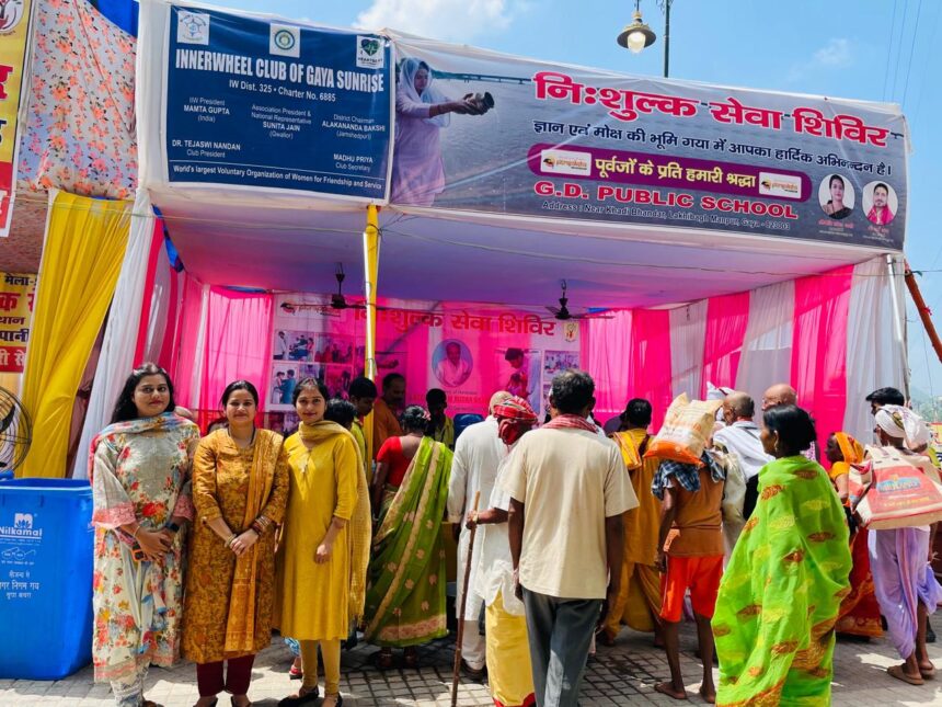 गया।इनरव्हील क्लब ऑफ़ गया सनराइज और जीडी पब्लिक स्कूल के सहयोग से पितृपक्ष मेला में सीता कुंड में नि:शुल्क सेवा शिविर का आयोजन किया गया है। यह शिविर का उद्घाटन पूर्व मंत्री अवधेश सिंह के द्वारा किया गया है। इस अवसर पर वरिष्ठ अतिथि के रूप में रोमित कुमार एवं शशी शेखर शामिल हुए हैं। यहाँ पर गया के कई जाने माने डॉक्टर इवन अन्य सदस्य शामिल थे और यह सफलतापूर्वक संचालित हो रहा है। शिविर का संचालन स्नेहा शाही और धर्म शाही के द्वारा किया जा रहा है।