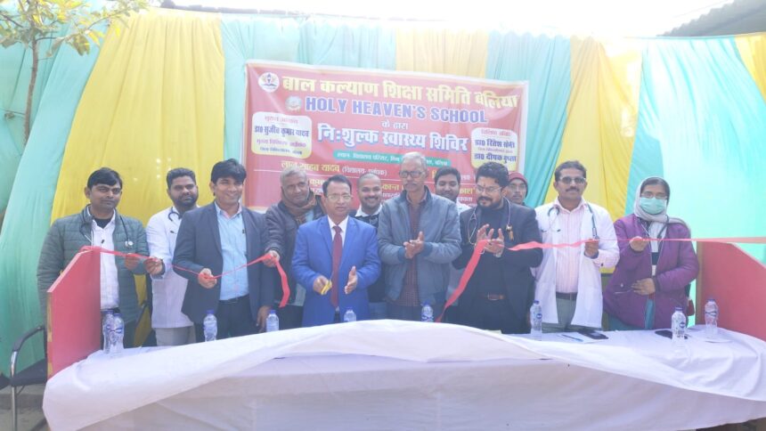 बलिया। बाल कल्याण शिक्षा समिति के तत्वधान में होली हैवनस स्कूल मिश्र नेवरी में निःशुल्क स्वास्थ्य शिविर कैंप का आयोजन किया गया जिसमें मुख्य अतिथि डॉ सुजीत कुमार यादव सीएमएस ने फीता काटकर स्वास्थ्य शिविर को शुभारंभ किया विशिष्ट अतिथि डॉ रितेश कुमार सोनी, डॉ दीपक गुप्ता डॉ रजनीश रंजन, डॉ दिलीप, डॉ आकांक्षा जायसवाल, अन्य डॉक्टर गण प्रबंधक लाल साहब यादव , राधेश्याम गिरी प्रधानाचार्य सुजीत तिवारी, राहुल वर्मा मौजूद रहे इसी क्रम में संस्था के अध्यक्ष सुशील कुमार सोनी द्वारा डॉ सुजीत कुमार यादव (CMS),महासचिव कृष्ण कान्त पाण्डेय द्वारा डॉ रितेश सोनी,डॉ दीपक गुप्ता को संस्था के स्मृति चिन्ह देकर सम्मानित किया । मुख्य अतिथि द्वारा अपने उद्बोधन में संस्था के योजनाओं और स्वास्थ्य के बारे में बताया इसी क्रम में डॉ रितेश सोनी ने कहा कि ये संस्था देश हित मे काम कर रही है और देश के भविष्य छात्रों के लिये ये काम कर रही है और सामाजिक , शिक्षा और आत्मनिर्भर महिलाओं के लिए सिलाई कढ़ाई की ट्रेनिंग एवम बच्चों को निशुल्क शिक्षा देने का कार्य कर रही है वहीं उत्तम प्रकाश यादव प्रवक्ता ने प्रकाश डालते हुए कहा कि यह संस्था देश के भविष्य बच्चे को बाल कल्याण शिक्षा समिति पूर्ण रूप से समर्पित हैं।