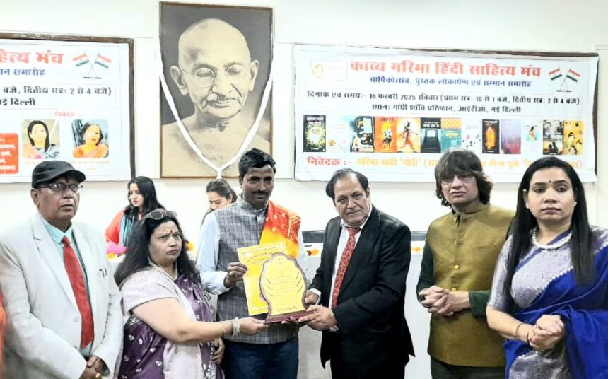 नई दिल्ली : काव्य गरिमा हिंदी साहित्य मंच के तत्वावधान में काव्य गोष्ठी एवं सम्मान समारोह का आयोजन गांधी शांति प्रतिष्ठान, नई दिल्ली में संपन्न हुआ। उक्त मौके पर डॉ. नन्दकिशोर साह को लेखन के क्षेत्र में उत्कृष्ट योगदान के लिए अखिल भारतीय सृजन सम्मान- 2025 से सम्मानित किया गया। मौके पर देशभर से ख्याति प्राप्त पत्रकार, साहित्यकार, समाजसेवी एवं कवि मौजूद रहे।