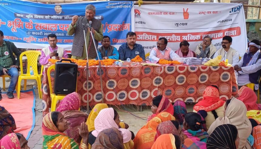जनसभा में पंकज श्वेताभ ने श्रमिकों को उचित मजदूरी और सुरक्षा की मांग की, जबकि सौरभ कुमार ने भूमिहीन गरीब कामगारों के लिए आवासीय भूमि अधिकार की आवश्यकता जताई। अमर सिंह ने पूर्वी चंपारण के भूमिहीन दलित परिवारों के लिए भूमि अधिकार पर जोर दिया और प्रशासन के साथ लोकतांत्रिक तरीके से संवाद करने की अपील की।