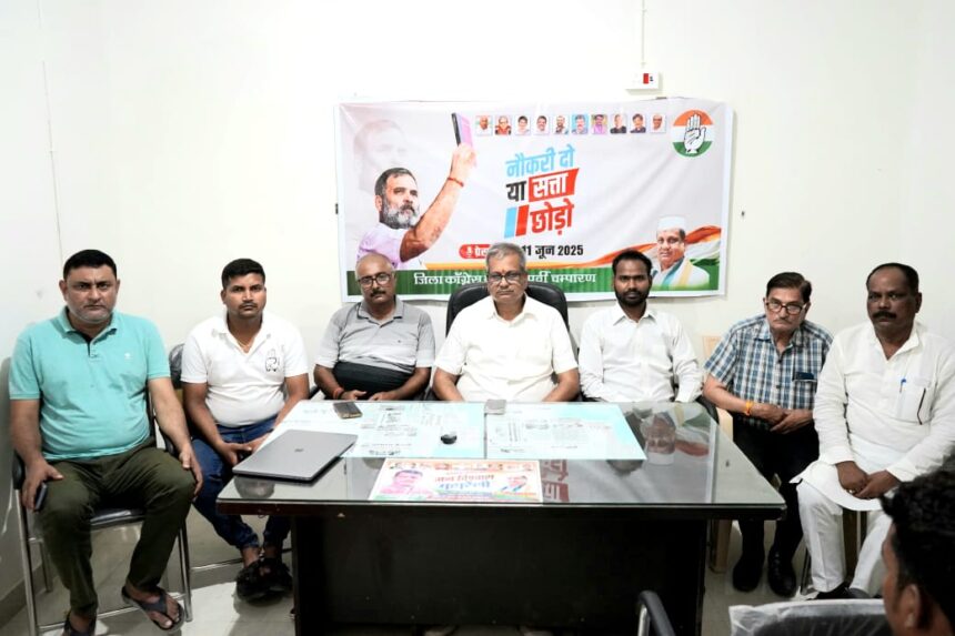 मोतिहारी : जिला कांग्रेस कमिटी, मोतिहारी के अध्यक्ष ई० शशिभूषण राय उर्फ गप्पू राय ने आज कांग्रेस कार्यालय में आयोजित प्रेस वार्ता को संबोधित करते हुए कहा कि बिहार प्रदेश कांग्रेस कमिटी के निर्देशानुसार 12 जून , गुरुवार को सुबह 11 बजे cwc के स्थाई आमंत्रित सदस्य सह राज्यसभा सांसद डॉ अखिलेश प्रसाद सिंह के नेतृत्व में मोतिहारी कचहरी चौक पर सभा सम्बोधन किया जायेगा एवं “नौकरी दो या सत्ता छोड़ो” नारे के साथ जिला रोजगार कार्यालय का घेराव किया जाएगा।