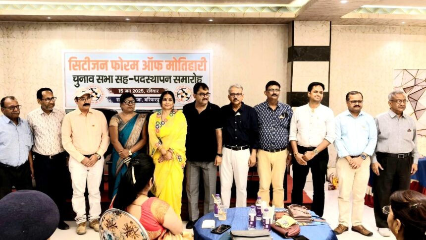 सिटिजन फोरम ऑफ मोतिहारी के सत्र 2025-26 के पदाधिकारी का निर्वाचन चुनाव पदाधिकारी अधिवक्ता नरेंद्र देव जी एवं सह निर्वाचन पदाधिकारी तथा संरक्षक पूर्व अध्यक्ष बीरेंद्र जालान के निर्देशन में संपन्न हुआ. सिटीजन फोरम के आगामी सत्र के लिए सर्वसम्मति से अरुण कुमार श्रीवास्तव को अध्यक्ष एवं धर्मवर्धन प्रसाद को सचिव निर्वाचित घोषित किया गया. उपाध्यक्ष पद हेतु प्रोफेसर संध्या चौधरी तथा शिक्षाविद रणजीत कुमार को निर्वाचित किया,कोषाध्यक्ष पद पर डॉ विवेक गौरव निर्वाचित हुए,सह सचिव के रूप में मनीष कुमार का निर्वाचन अगले कार्यकाल के लिए हुआ.