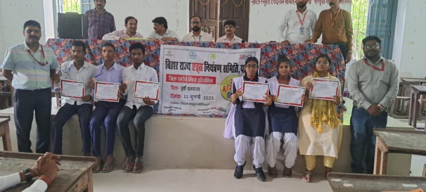 मोतिहारी। बिहार राज्य एड्स नियंत्रण समिति पटना के सौजन्य से जिला स्कूल मोतीहारी में छात्रों को एचआईवी / एड्स से बचाव हेतु जागरूक करने के उद्देश्य से “रेड रिबन क्विज” प्रतियोगिता का आयोजन किया गया। जिसमें जिले के विभिन्न क्षेत्र से 50 सरकारी और निजी विद्यालयों से चयनित 100 बच्चों ने भाग लिया। बेहतर प्रदर्शन करने वाले छात्र-छात्राओं को सम्मानित किया गया।पुरस्कार वितरण संचारी रोग पदाधिकारी सह एड्स नियंत्रण पदाधिकारी डॉ संजीव चौधरी के द्वारा किया गया। कार्यक्रम के संयोजक जिला एड्स नियंत्रण समिति के पर्यवेक्षक संजय कुमार जायसवाल के द्वारा एचआईवी एड्स पर विस्तार पूर्वक बताते हुए प्रथम श्रेणी प्राप्त विद्यार्थी को पटना में राज्य स्तरीय रेड रिबन क्विज प्रतियोगिता में भाग लेने जाना है बताया।