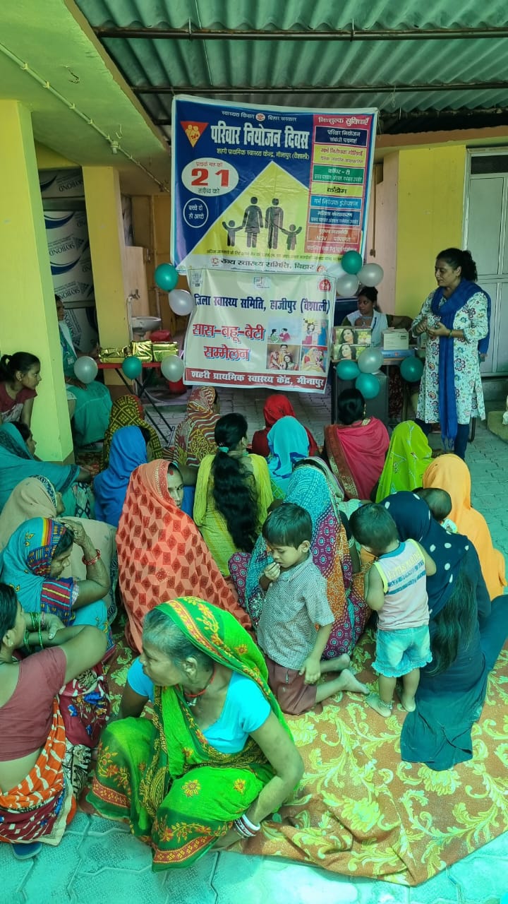 वैशाली। शहरी प्राथमिक स्वास्थ्य केंद्र मीनापुर के प्रांगण में मिशन परिवार विकास के तहत मंगलवार को सास बहू बेटी सम्मेलन का आयोजन किया गया। आयोजन में पोषक क्षेत्र की कई सास और बहुओं ने हिस्सा लिया। सास बहू और बेटियों के बीच खेल के माध्यम से यह सब बताने की कोशिश किया गया कि हमारा परिवार जितना ही छोटा होगा उतना ही अच्छा होगा।
