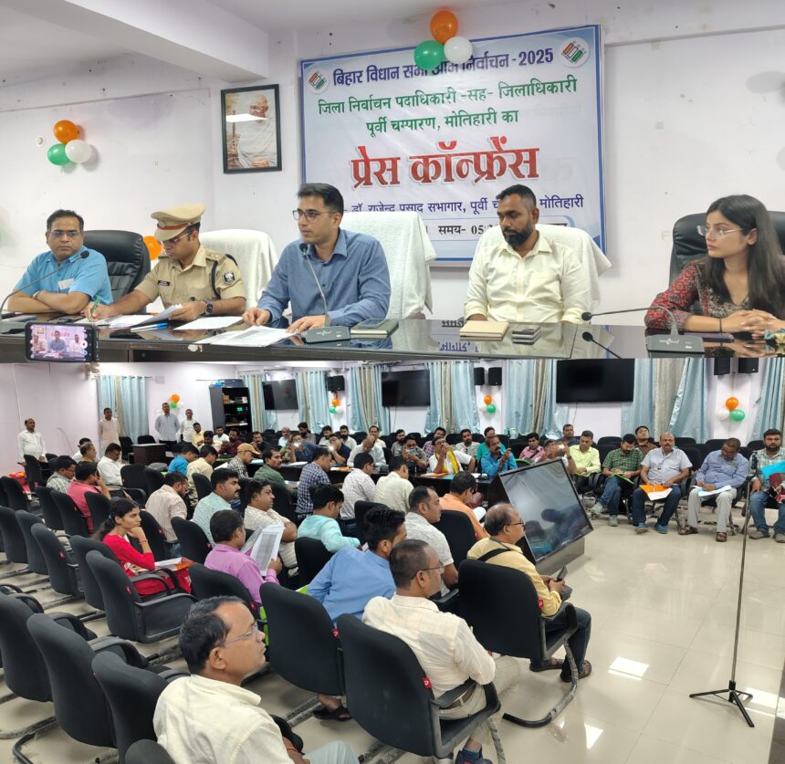 पूर्वी चंपारण जिला में 11 नवंबर 2025 को मतदान की तिथि निर्धारित की गई है। मतगणना 14 नवंबर 2025 को कराई जाएगी। जिलाधिकारी ने कहा कि मॉडल ऑफ कोड आफ कंडक्ट के लागू होने के 24 घंटे के अंदर सभी सरकारी कार्यालय से बैनर फ्लेक्स (प्रचार सामग्री) हटा दिए जाएंगे।