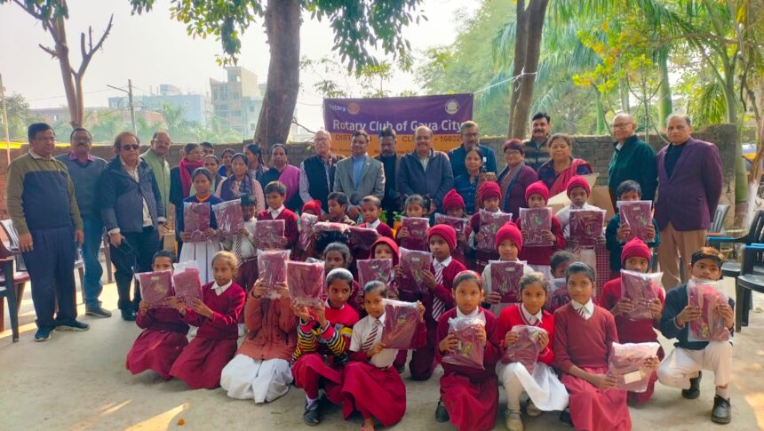 शहर के प्रोफेसर कॉलोनी स्थित मिशन कन्या मध्य विद्यालय में बच्चों को स्वेटर वितरित किया गया है। रोटरी गया सिटी के सदस्यों ने एक सौ बच्चों को स्वेटर व बिस्कुट वितरित किया है। इस दौरान क्लब के अध्यक्ष कुमुद वर्मा ने कहा कि जो बच्चे शेष रह गये है। उन्हे भी स्वेटर उपलब्ध करा दिया जायेगा। इस दौरान राजन सिन्हा व अमरेश कुमार के सहयोग से यह एक सौ स्वेटर बच्चों को वितरित किया गया है। राजन सिन्हा नन्हे बच्चों के साथ केक काटकर अपना जन्मदिन मनाया है। उन्होनें कहा कि बच्चों के चेहरे पर मुस्कान हमारे जन्मदिन का सबसे बड़ा उपहार है। इस दौरान स्वेटर पाकर बच्चों के चेहरे पर मुस्कान आ गयी। इस मौके पर सचिव राजकुमार दुबे ने कहा कि आगे भी इस तरह के सामाजिक कार्य क्लब की ओर से होते रहेगें। इस मौके पर डा रतन कुमार, डा अमृता सिन्हा, डा मंजू सिन्हा,उषा राज, कांतेश सिन्हा, अरविन्द कुमार सिन्हा,सतीश मोर, पीपी चकरियार, प्रियरंजन डायर व अन्य लोग मौजूद रहे हैं।