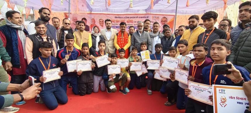 मुख्य अतिथी सांसद नीरज शेखर ने कहा कि खेल में हार जीत लगा रहता है।इससे हतोस्ताहीत नहीं होना चाहीए।खेल को खेल की भावना से ही खेलना चाहिए।जो आज हारेगा वह आगे और मेहनत करें,जो जीत रहा है और प्रयास करें कि देश के लिए खेले।कहा कि खेल न केवल शारीरिक विकास के लिए आवश्यक है,बल्की यह अनुशासन और टीम भावना भी सिखाता है।उन्होंने केन्द्र और राज्य सरकार द्वारा खेल संम्बन्धी योजना पर प्रकाश डाला।कहा कि खेल आज प्रधानमंत्री नरेन्द्र मोदी जी का प्रयास है खेल कूद में भारत के युवा विश्व पटल पर अपना नाम अंकित कराकर देश का नाम उच्चा करें।भाजपा जिलाध्यक्ष संजय मिश्रा ने कहा कि हमारे प्रधानमंत्री जी का प्रयास है कि भारत के यूवा प्रत्येक क्षेत्र में देश का नाम रोशन करें ।वह विभिन्न प्रकार की योजना चला रहे हैं।खेलों इण्डीया के माध्यम से गांव गांव से खिलाड़ी चिन्हीत किए जा रहे हैं।तीन दिवसीय खेल प्रतियोगीता में बालक वर्ग फूटबाल में सब जूनियर में बलिया नगर,जूनियर में मोहम्मदाबाद तथा सिनीयर वर्ग में बलिया नगर विजेता रहा।कबड्डी बालक वर्ग सब जूनियरमोहम्मदाबाद ,जूनियर बलिया नगर तथा सिनियर बैरीया के खिलाड़ी विजेता रहे।कबड्डी बालिका में सब जूनियर बलिया नगर ,जूनियर जहूराबाद तथा सिनियर बैरीया विजेता रही।सभी विजेता टीम को मुख्य अतिथि तथा विशिष्ट अतिथि ने शिल्ड व प्रमाण पत्र दिया ।इस मौके पर सांसद खेल स्पर्धा 2025 के पुरस्कार वितरण के समय श्रीमती सुनीता श्रीवास्तव,मुख्य विकास अधिकारी श्री ओजस्वी राज जी,धर्मेंद्र सिंह ,जिला मंत्री अरुण सिंह बंटू ,कृष्णा पांडेय,सोनी तिवारी ,राघव सिंह ,मानवेंद्र विक्रम सिंह ,किशन प्रताप सिंह,अमित गिरी ,निषिद्ध श्रीवास्तव,राकेश सिंह,शिव जी चंदेल,अखिलेश सिंह,सिद्धार्थ गोलू,धर्मवीर सिंह,अदालत सिंह,विबेक सिंह,रविशंकर सिंह पप्पू,आदि रहे…