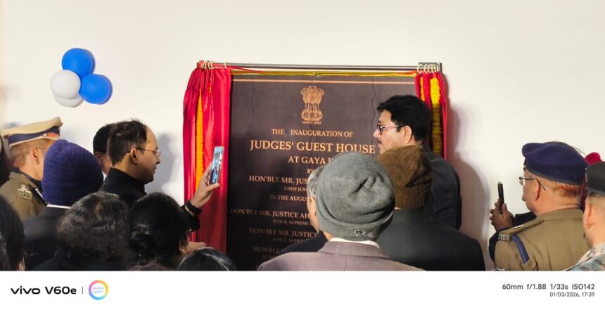 वीडियो कॉन्फ्रेंसिंग के माध्यम से चीफ जस्टिस आफ इंडिया सूर्यकांत ने किया। उद्घाटन को लेकर नवनिर्मित गेस्ट हाउस को रंग बिरंगे बल्बों से दुल्हन की तरह सजाया गया। बताया गया कि इस गेस्ट हाउस में एक प्रेसीडेंशियल सुइट के साथ 10 सुट कमरा, 10 एकल सूट, जिम, डाइनिंग हॉल, वेटिंग एरिया, गार्डन, वाहनों की पार्किंग, वाई-फाई की सुविधा, समुचित प्रकाश व आरामदेह बिस्तर की सुविधा सहित अन्य आधुनिक सुविधा उपलब्ध कराया गया है। उद्घाटन के मौके पर प्रधान जिला एवं सत्र न्यायाधीश मदन किशोर कौशिक, डीएम,एसएसपी सहित कई न्यायिक पदाधिकारी आदि मौजूद रहे। आयोजित उद्घाटन समारोह के अवसर पर न्यायिक कर्मचारी गण भी शनिवार की सुबह से ही तैयारी में जुटे रहे। गेस्ट हाउस का निर्माण होने से देश के विभिन्न भागों से गया जी आने वाले न्यायिक पदाधिकारी को करने के लिए उत्तम सुविधा की सहूलियत मिलेगी। गया जी में यह न्यायिक पदाधिकारी के लिए पहले गेस्ट हाउस है।