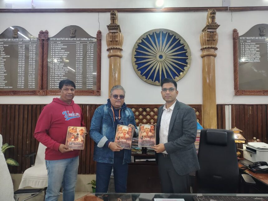 मोतिहारी। बिहार के चम्पारण में निर्मित बहुचर्चित फिल्म “चम्पारण सत्याग्रह” के ऑफिसियल बुकलेट का लोकार्पण पूर्वी चम्पारण के जिलाधिकारी सौरभ जोरवाल द्वारा अपने कार्यकाल कक्ष में की गई। कार्यक्रम में फिल्म के कलाकारों के अलावा जिला कला संस्कृति पदाधिकारी, फिल्म अभिनेता पप्पू गुप्ता समेत कई लोगों ने हिस्सा लिया।