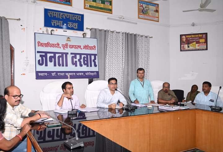 मोतिहारी : रूटिंन कार्यक्रम के तहत जिला समाहरणालय में आयोजित सप्ताहिक कार्यक्रम जनता के दरबार में जिला प्रशासन द्वारा जिलेभर के विभिन्न प्रखंडों से काफी संख्या में फरियादी अपने समस्याओं को लेकर पहुंचे ।जनता के दरबार कक्ष के बाहर लंबे समय तक आवेदक प्रतीक्षा करते रहे ।दरबार में आए 83 आवेदन कर्ताओं की समस्याओं पर सुनवाई की गई ।