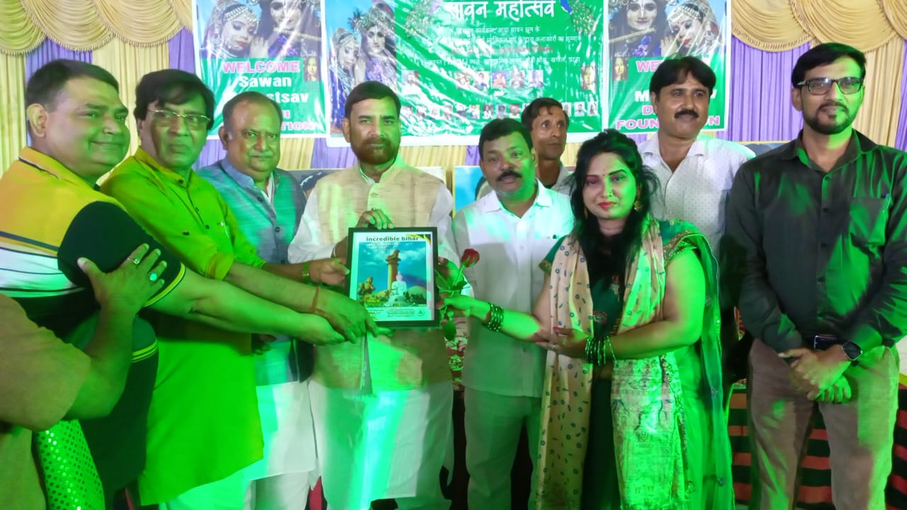 खगौल (पटना)।पटना की सामाजिक संस्था दीदीजी फाउंडेशन ने खगौल के मोतीचौक स्थित सामुदायिक भवन में सावन महोत्सव का आयोजन किया। कार्यक्रम का उद्घाटन जदयू के राष्ट्रीय सचिव राजीव रंजन प्रसाद, ,पद्मश्री विमल जैन,जीएसटी कमीश्नर समीर परिमल ने संयुक्त रूप से दीप प्रज्वलित कर किया।
