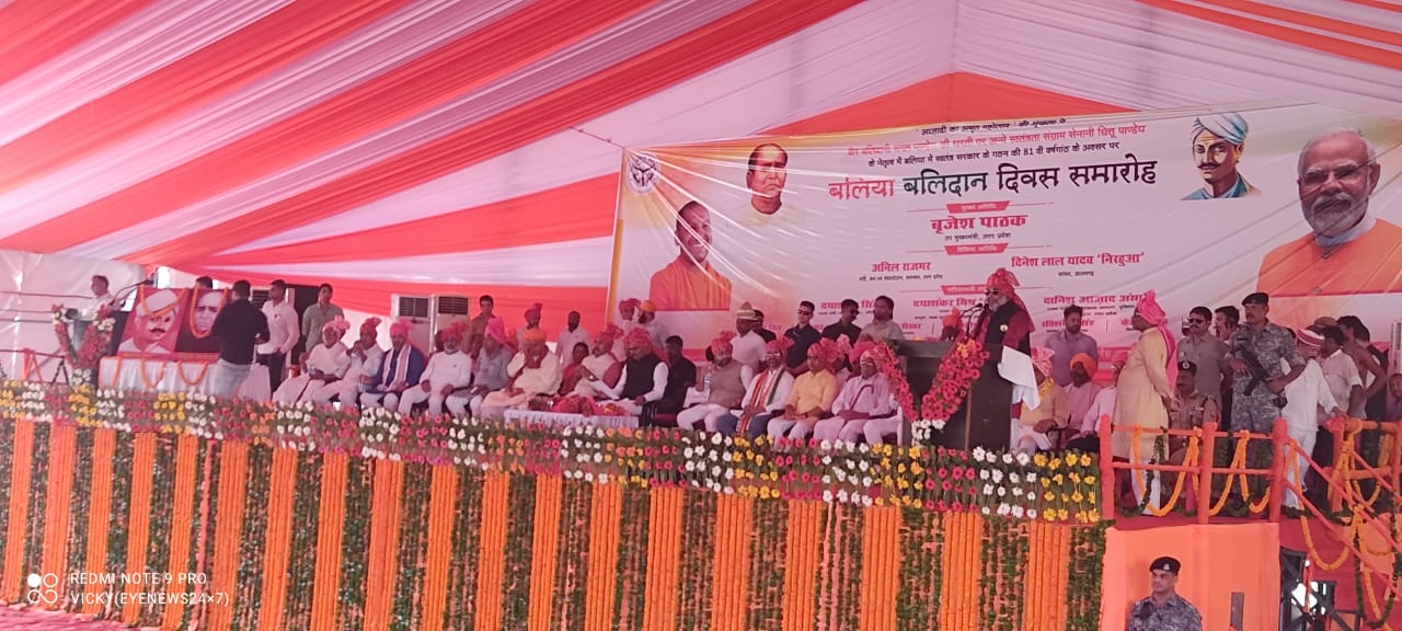 इस अवसर पर पुलिस लाईन के परेड ग्राउण्ड में भव्य जनसभा का भी आयोजन हुआ। जनसभा में डिप्टी सीएम श्री पाठक ने कहा कि बलिया साधारण धरती नहीं है। इसका अपना इतिहास रहा है। बलिया बलिदान दिवस के ऐतिहासिक अवसर पर पूरे प्रदेश की ओर से यहां के वीर क्रांतिकारियों को नमन करता हूं। 1942 की क्रांति को साझा करते हुए कहा, गांधी जी के ‘करो या मरो‘ के नारे को यूं तो पूरे देश ने सुना, लेकिन बलिया के वीरों ने उसे हृदय से लगाकर आंदोलन में बढ़ चढ़कर प्रतिभाग किया। नतीजन, अंग्रेजों को उन क्रांतिकारियों के आगे झुकना पड़ा। उन्होंने कहा कि हम सबका अब यह कर्तव्य है कि इस आजादी को अक्षुण्य बनाए रखें।