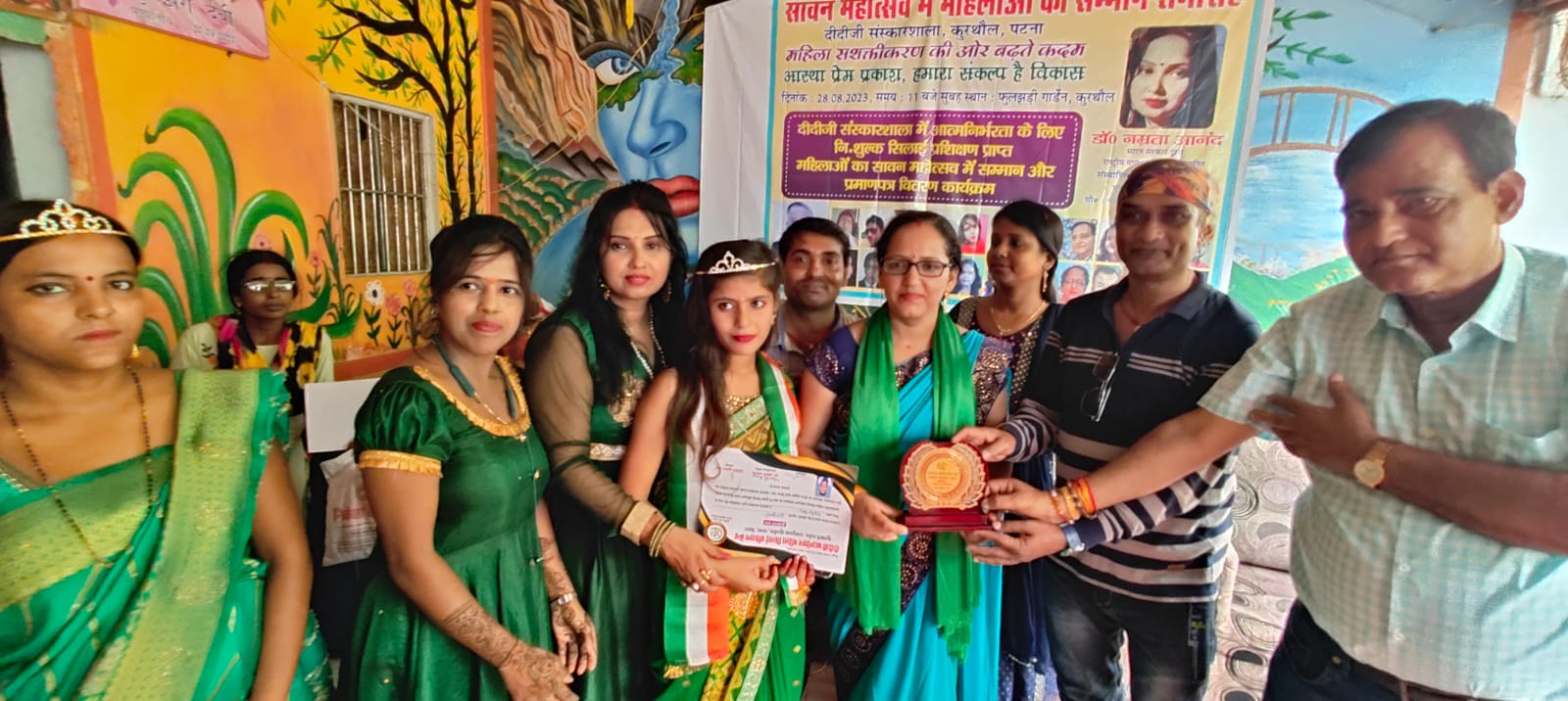 गया। कार्यक्रम की शुरूआत दीप प्रज्जवलित कर गयी । इसके अवसर पर बतौर अतिथि समाजसेवी मिथिलेश सिंह, दिवाकर कुमार वर्मा, राकेश कुमार,प्रवीण कुमार बादल, सुचित्रा झा, अनुरााधा मिश्रा, मनीषा कुमारी मौजूद थी जिन्हें सम्मानित किया गया।सिलाई शिक्षक सुनीता देवी, रानी देवी और सुनीता मिश्रा को सम्मानित किया गया। सर्वश्रेष्ठ काम के लिये अंजली कुमारी, शाह ममता और पल्लवी को सम्मानित किया गया।पूजा सावन क्वीन वहीं सुमन देवी मिसेज सावन क्वीन बनीं।