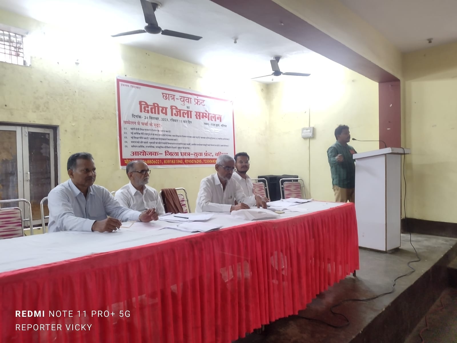 बलिया : आज दिनांक 24 सितम्बर 2023 रविवार को टाउन हॉल बलिया में छात्र – युवा फ्रंट का द्वितीय जिला सम्मेलन सम्पन्न हुआ। छात्रों युवाओं की मुख्य समस्या महंगी होती शिक्षा और घटते रोजगार के सवाल पर वक्ताओं ने बातें रखी। कहा गया की पूंजीवादी व्यवस्था में महंगाई व बेकारी की समस्या हल नहीं हो सकती। उसके लिए व्यवस्था परिवर्तन आवश्यक है। व्यवस्था में सुधार व परिवर्तन के लिए छात्रों युवाओं को संघर्ष करना होगा। संघर्ष के लिए संघठन की वैचारिकी की कमी को दूर करना होगा । संघठन व संघर्षों में जाति धर्म की राजनीति व उपभोक्ता संस्कृति का विरोध करके समाज व राष्ट्र हित की राजनीति को विकसित करना होगा। सम्मेलन में मंटू जी, मिथिलेश, राजशेखर, गौरव श्रीवास्तव , राज नारायण ब्रह्मदत्त तिवारी , श्याम नारायण सिंह , संतोष सिंह ने बातें रखी। अध्यक्षता जनार्दन सिंह और संचालक अतहर ने किया।