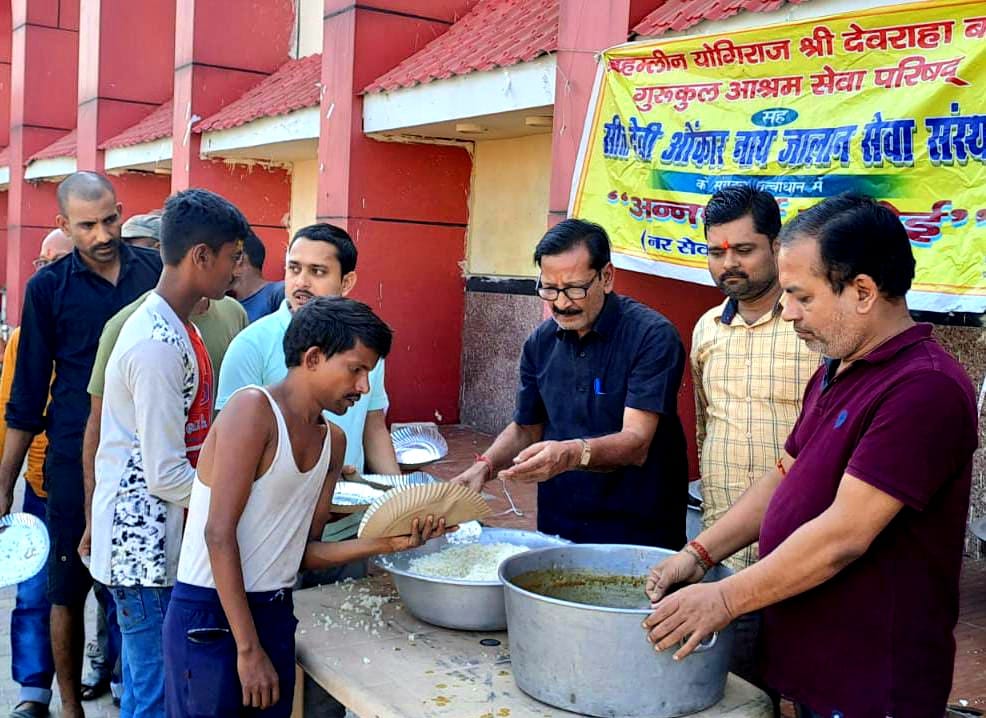 मोतिहारी : गरीबों और जरूरतमंदों की सेवा ही सच्ची ईश्वरीय सेवा है! नगर के स्टेशन परिसर में जरूरतमंदों, मजदूरों ,टेंपो चालक, रिक्शा चालक ,आम जनों के बीच निशुल्क भोजन वितरण का 91वां साप्ताहिक पुनीत कार्य संपन्न हुआ । नगर में प्रत्येक शनिवार को दोपहर 1:00 देवरहा बाबा गुरुकुल आश्रम सेवा परिषद और सीता देवी ओंकार नाथ जालान सेवा संस्थान के संयुक्त तत्वाधान में चलाया जा रहा यह अभियान भविष्य में भी जारी रहेगा । सीता देवी ओंकार नाथ जालान सेवा संस्थान के विनोद जालान ने बताया कि शारदीय नवरात्र के अवसर पर आज सप्तमी को 450 से ऊपर लोगों के बीच बिना प्याज लहसुन का सेधा नमक में बना सब्जी और चावल का भोजन कराया गया।भोजन की शुद्धता पौष्टिकता और स्वादिष्टता का ख्याल रखते हुए भोजन तैयार कराया जाता है ।भोजन सेवा के साथ पेयजल की भी सेवा दी गई! मिशन अन्नपूर्णा रसोई के संचालक राम भजन ने बताया कि यह सेवा निरंतर जारी रहेगी ।100 वे सप्ताह के अवसर पर उत्सव के रूप में मिशन अन्नपूर्णा रसोई का आयोजन किया जाएगा! मौके पर भोजन वितरण में सेवा देते हुए राजेंद्र जालान, विक्की कुमार ,गुड्डू कुमार, रामचंद्र प्रसाद उपस्थित रहे