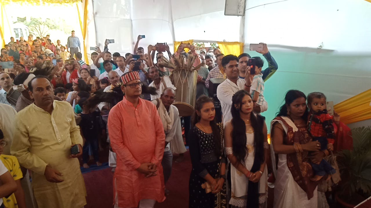 बोधगया। धनावां स्थित 29वीं वाहिनी सशस्त्र सीमा बल मुख्यालय में बड़े ही धूमधाम के साथ मां दुर्गा की पूजा अर्चना की गई।इस मौके पर सशस्त्र सीमा बल के डीआईजी छेरिंग दोरजे, कमांडेंट एचके गुप्ता, सहित अधिकारियों जवानों एवं उनके परिजनों ने बढ़ चढ़कर हिस्सा लिया।अपने पुराने परंपरागत रीति रिवाज को आज भी कायम रखे हुए नवरात्र के मौके पर मां दुर्गा की प्रतिमा स्थापित करते हैं। विजयादशमी के दिन खोईंचा देकर मां को यहां से विदा की जाती है। आज विजयादशमी के दिन मां की विदाई के समय महिलाओं के द्वारा सिंदूर होली कार्यक्रम का आयोजन किया गया। मां की आरती करने के बाद महिलाओं ने सिंदूर की होली खेली है। महिलाएं अपने सुहाग की रक्षा के लिए मां के साथ-साथ आपस में महिलाएं सिंदूर की होली खेली है। यह परंपरा 29 वीं वाहिनी सशस्त्र सीमा बल मुख्यालय में मंगलवार को देखने को मिली। साथ ही हाथ जोड़कर मां से अपने सुहाग की रक्षा करने की प्रार्थना भी करते देखी गई।इस मौके पर 29 वीं वाहिनी सशस्त्र सीमा बल के कमांडेंट हरे कृष्ण गुप्ता ने बताया कि इस तरह का कार्यक्रम द्वितीय वर्ष 29वीं वाहिनी सशस्त्र सीमा बल मुख्यालय में किया गया है और यह कार्यक्रम को लेकर सेक्टर एवं वाहिनी के लोगों में काफी उत्साह देखा गया है उन्होंने बताया कि आज महिलाओं के द्वारा सिंदूर की होली भी खेली गई है।विसर्जन से पहले पंडालों में सिंदूर खेला के दौरान पूरा माहौल सिंदूरमयी हो गया। मान्यता है कि ऐसा करने से पति की उम्र लंबी होती है। मां दुर्गा को पान के पत्ते में सिंदूर लगाने के बाद मिठाई खिलाते समय श्रद्धालुओं की आंखें नम हो गई। धुनुची नृत्य का आयोजन किया गया।दुर्गा पूजा के दौरान इस नृत्य की परंपरा आज से नहीं, बल्कि काफी पहले से चली आ रही है। माना जाता है कि धुनुची डांस असल में शक्ति का परिचायक है और इसका संबंध महिषासुर के वध से भी जुड़ा हुआ है। पुराणों में जिक्र है कि अति बलशाली महिषासुर का वध करने के लिए देवताओं ने मां दुर्गा की पूजा- उपासना की थी और मां ने महिषासुर के वध से पहले अपनी शक्ति को बढ़ाने के लिए यही धुनुची नृत्य किया था। तब से लेकर आज तक यह परंपरा जारी है।इस मौके पर सशस्त्र सीमा बल के डीआईजी छेरिंग दोरजी, कमांडेंट एचके गुप्ता, संजना गुप्ता,डिप्टी कमांडेंट रविशंकर , कुमारी भारती,डिप्टी कमांडेंट दूर्गा प्रसाद यादव, डिप्टी कमांडेंट वेंकट रमण, सहायक कमांडेंट राजाराम , सहायक कमांडेंट राजकुमार ,एडम अधिकारी राजीव रंजन तिवारी, सहित अधिकारी जवान व उनके परिजन मौजूद थे।