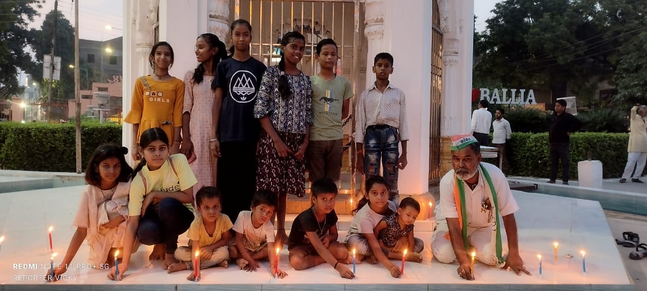 बलिया शहीद पार्क चौक गांधी प्रतिमा के समीप विश्व की प्रथम आयरन लेडी महिला भारत की प्रथम महिला प्रधानमंत्री स्वर्गीय इंदिरा गांधी की शहादत दिवस पर वरिष्ठ कांग्रेस नेता व सामाजिक कार्यकर्ता मदर टेरेसा बाल शिक्षा सेवा समिति के संस्थापक जाकिर हुसैन ने बच्चों के साथ में कैंडल जलाकर 2 मिनट का मौन रखकर ईश्वर से आत्मा की शांति की प्रार्थना किया! साथ ही हुसैन ने बताया कि ऐसी भविष्य में घटना दर्दनाक किसी भी भारतीय नागरिक या नेताओं का ना हो सरकार इस पर ध्यान दें! इस दौरान बबलू डब्लू आयरन गुड्डू महेश गुप्ता चंदन पाठक अन्य बच्चे मौजूद रहे