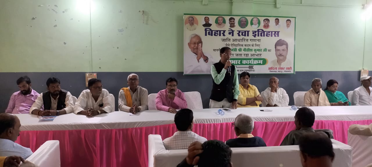 गोपालगंज जिला जदयू के द्वारा आभार कार्यक्रम गोपालगंज कर्पूरी सभागार में हुई। कार्यक्रम की अध्यक्षता जिला जदयू के अध्यक्ष सह जिला बीस सूत्री कार्यक्रम कार्यान्वयन समिति के उपाध्यक्ष आदित्य शंकर शाही ने की तथा इस कार्यक्रम का सफल संचालन जदयू जिला प्रवक्ता बृजकिशोर सिंह ने की कार्यक्रम में मुख्य अतिथि के रूप में उपस्थित जनता दल यूनाइटेड के राष्ट्रीय कोषाध्यक्ष सह गोपालगंज सांसद डॉक्टर आलोक कुमार सुमन एवम विशिष्ठ अतिथि के रूप में पूर्व मंत्री एवम पूर्व विधायक रामसेवक सिंह कुशवाहा उपस्थित थे। पूर्व मंत्री ने लोगों को संबोधित करते हुए कहा की बिहार के विकास पुरुष लोकप्रिय यशश्वी मुख्यमंत्री नीतीश कुमार ही समाजिक न्याय के असली मसीहा हैं। श्री कुशवाहा ने कहा कि जातिवाद, परिवारवाद साम्प्रदायवाद, क्षेत्रवाद एवं भ्रष्टाचार से दूर रहकर समाजवादी विचारधारा पर चलने वाले सुशासन एवं ईमानदारी के प्रतिक मुख्यमंत्री नीतीश कुमार ने जाति आधारित गणना कराकर तथा उसकी रिपोर्ट जारी कर एवं जिसकी जितनी संख्या भारी उसकी उतनी हिस्सेदारी का नारा बुलंद करते हुए उसी के अनुरूप नीति बनाने की पहल कर के यह साबित कर दिया है कि इस देश में समाजिक न्याय के असली मसीहा नीतीश कुमार ही है। सांसद आलोक सुमन ने कहा कि जाति आधारित गणना कराकर उसकी रिपोर्ट जारी कर पुरे देश में इतिहास रचने वाले माननीय मुख्यमंत्री नीतीश कुमार के प्रति आज पुरा देश आभार व्यक्त कर रहा है। सांसद ने कहा कि प्रत्येक वर्ष दो करोड़ बेरोजगार युवाओं को नौकरी देने की वादा करने वाले प्रधानमंत्री नरेन्द्र मोदी अब बेरोजगारी के मुद्दे पर एक शब्द नहीं बोलते है, वहीं दूसरी ओर मुख्यमंत्री नीतीश कुमार ने एक दिन में एक से लाख बीस हजार अधिक लोगों को शिक्षा विभाग में नौकरी देकर पुरे देश में इतिहास रच दिया है। सांसद आलोक कुमार सुमन ने कहा कि केन्द्र सरकार ने कक्षा एक से आठ तक के बच्चों का छात्रवृत्ति योजना बंद कर दिया है जिसके कारण मोदी सरकार का अतिपिछड़ा विरोधी चेहरा उजागर हो गया है। उन्होंने ने कहा कि जननायक कपूरी ठाकुर के विचारों के अनुरूप मुख्यमंत्री नीतीश कुमार ने त्रिस्तरीय पंचायती राज संस्थाओं एवं नगर निकायों के चुनावों में अतिपिछड़ा वर्ग को आरक्षण देकर इस समाज को समाजिक आर्थिक एवं राजनैतिक रूप से सशक्त बनाने का कार्य किया है। मुख्यमंत्री नीतीश कुमार ने सता संभालने के बाद सर्व प्रथम सितम्बर 2006 में ही अतिपिछड़ा वर्ग के लिए आयोग का गठन एवं आजादी के बाद देश में पहली बार बिहार में 2009 में पिछड़ा – अतिपिछड़ा कल्याण विभाग का गठन किया। कपूरी ठाकुर के विचारों को आत्मसात कर उनके सपने को साकार करते हुए मुख्यमंत्री नीतीश कुमार ने अतिपिछड़े स