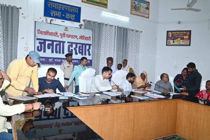 मोतिहारी : डॉ राधाकृष्णन सभागार, मोतिहारी में आयोजित कार्यक्रम जनता के दरबार में जिला प्रशासन द्वारा जिलेभर के विभिन्न प्रखंडों से आए 53 आवेदन कर्ताओं की समस्याओं पर सुनवाई की गई ।
