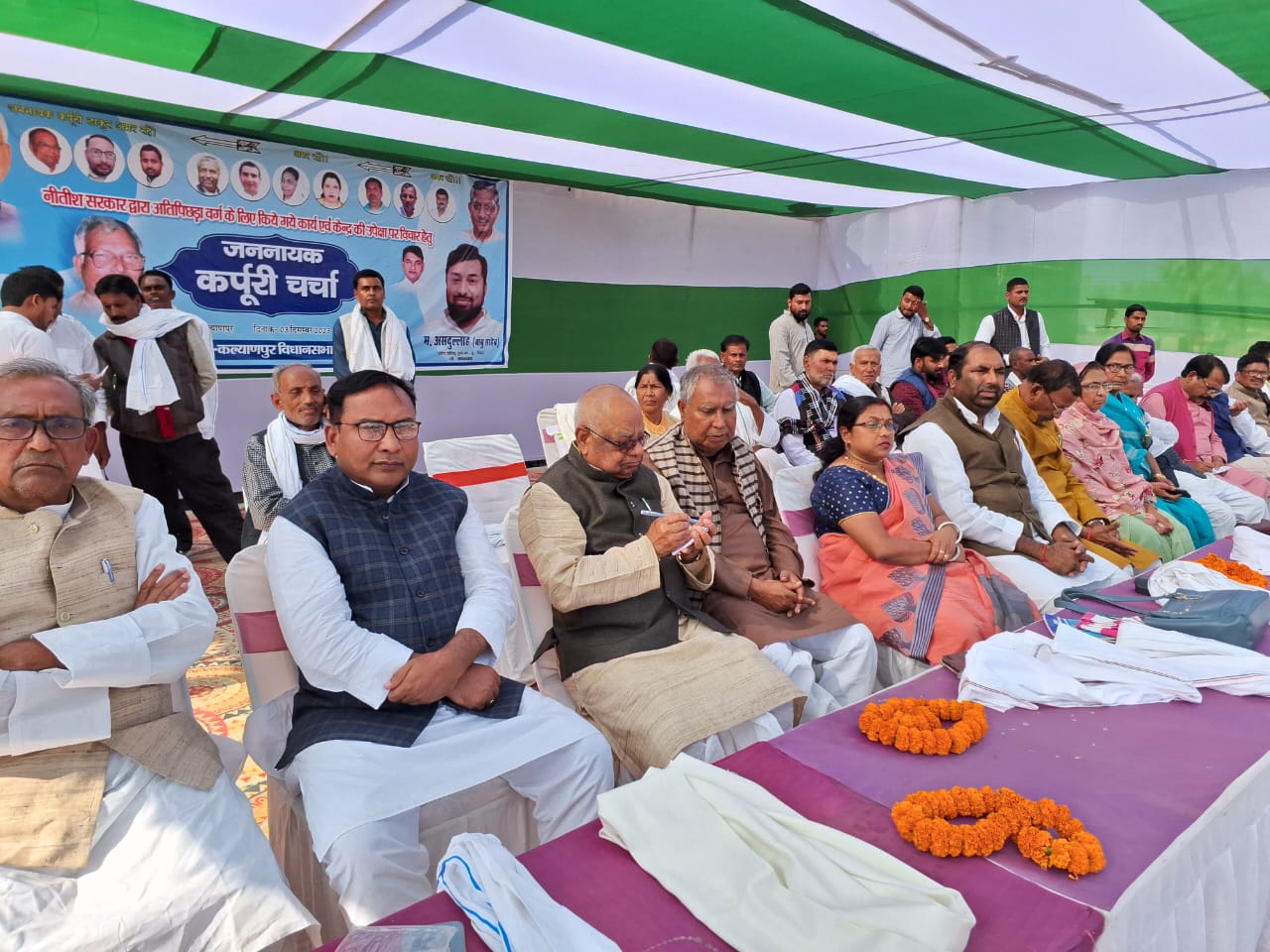 कल्याणपुर पूर्वी चंपारण : कल्याणपुर प्रखंड कार्यालय के मैदान में जदयू की ओर से कल्याणपुर विधानसभा क्षेत्र स्तरीय जननायक कर्पूरी चर्चा कार्यक्रम कार्यक्रम आयोजित हुआ।,