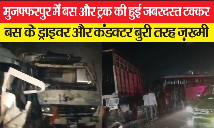 मुजफ्फरपुर में तेज रफ्तार का कहर रुकने का नाम नहीं ले रहा जिले में आए दिन कहीं ना कहीं सड़क हादसे देखने को मिलते रहते है वही ताजा मामला मुजफ्फरपुर जिले के मनियारी थाना क्षेत्र के काजिंदा चौक के समीप स्थित रिलायंस पेट्रोल पंप के समीप की है जहां एक यात्री बस मुजफ्फरपुर से समस्तीपुर की तरफ जा रही थी वही ट्रक समस्तीपुर से मुजफ्फरपुर की तरफ आ रही थी इसी क्रम में मनियारी थाना क्षेत्र के काजिंदा चौक के पास रिलायंस पेट्रोल पंप के समीप ट्रक और बस में जबरदस्त टक्कर हो गई जिसमें बस में सवार कई यात्री घायल बताए जा रहे हैं वही इस घटना के बाद बस का ड्राइवर अंदर ही फस गया था जिसको स्थानीय लोगों ने काफी मशक्कत के बाद बाहर निकाला और ड्राइवर और कंडक्टर को इलाज के लिए अस्पताल में भर्ती कराया है वही इस घटना के बाद घटनास्थल पर स्थानीय लोगों की भारी भीड़ जमा हो गई पूरे मामले की जानकारी देते हुए मनियारी थाना अध्यक्ष उमाकांत सिंह ने बताया कि थाना क्षेत्र के काजिंदा चौक के पास स्थित रिलायंस पेट्रोल पंप के समीप एक बस और ट्रक की टक्कर हो गई है जिसमें बस का चालक और खलासी घायल हो गया है जिसको इलाज के लिए अस्पताल में भर्ती कराया गया है वही दोनों गाड़ियों को जप्त कर लिया गया है साथ ही आगे की कार्रवाई की जा रही है