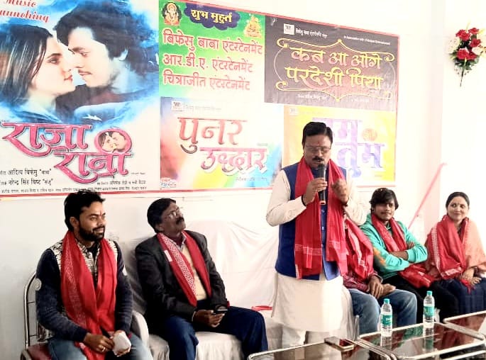 संबोधित करते हुए डा लालबाबू ने कहा कि चंपारण की भूमि पर फिल्म के काफी लोकेशन है।यह जिला कलाकारो से भरा पडा है।जिले से काफी कलाकार देश मे ख्याति अर्जित किये है।मुहूर्त समारोह में फिल्म लाइन से जुड़े हुए काफी लोग शामिल थे। अतिथि मे अरविंद श्री वास्तव भी थे। उक्त अवसर पर पहुंचे खलनायक की भूमिका निभाने वाले राष्ट्रीय स्तर के ख्याति प्राप्त कलाकार सौरभ वर्मा राजा ने बताया कि अभिजीत प्रकाश द्वारा पूर्णिमा और नाग नागिन का सफल निर्माण हुआ है।साथ साथ कई अन्य लघु फिल्मों का भी निर्माण इन्होने किया है जो काफी हीट हुआ है।: निर्माता आदित्य बाबा एंटरटेनमेंट कंपनी के द्वारा अन्य फिल्में जो निर्माण होने वाली है उसमें , कब आओगे परदेसी पिया, हम और तुम के साथ पुनरुद्धार है ।राजा रानी फिल्म के कलाकारों मे हीरो है अभीजीत प्रकाश ,निर्देशक संजू जी,मुख्य खलनायक सौरभ वर्मा,अन्य कलाकारों मे सनवाज उर्फ बाबू,बाला सासब,सोनी,प्रतिमा शर्मा, सुरेंद्र साह,राजन आदि।