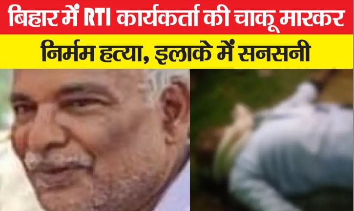 बिहार में अपराधियों का तांडव जारी है। अपराधी एक के बाद एक अपराध की वारदातों को बेखौफ अंजाम देकर पुलिस को चुनौती देने का काम कर रहे हैं। ताजा मामला बेतिया का है जहां मनुआपुल थाना क्षेत्र के जोकहा में अपराधियों ने दिनदहाड़े एक आरटीआई कार्यकर्ता की चाकू से गोदकर हत्या कर दी है।