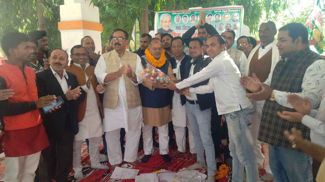 गया ।जदयू व्यवसाय उद्योग प्रकोष्ठ की बैठक गया गांधी मैदान के मंडप में कार्यकर्ताओं को संबोधित करते जिला अध्यक्ष प्रकाश राम पटवा ने कहा नीतीश सरकार के 18 साल और केन्द्र की मोदी सरकार के 9 सालों में क्या अन्तर है। लोगों को समझाना होगा कि ये लड़ाई विकास बनाम विनाश की है। उन्होंने कहा कि भाजपा की अघोषित तानाशाही के खिलाफ सोशल मीडिया पर सक्रिय हों और “हाटे बाजार – नीतीशे कुमार” अभियान की व्यापक सफलता के लिए हर हाट और बाजार को वाट्सएप ग्रुप से जोड़ें।आगे पटवा ने कहा कि मुख्यमंत्री श्री नीतीश कुमार ने वैश्य समाज के लिए जितना किया है, उतना किसी ने नहीं किया। वे वैश्यों की पहली पसंद हैं, खासतौर पर छोटे और खुदरा व्यापारियों के बीच वे काफी लोकप्रिय हैं। कुछ स्वार्थी तत्व लोगों को बर गलाने में लगे रहते हैं, लेकिन उनकी दाल नहीं गलेगी। “हाटे बाजार – नीतीशे कुमार” अभियान से हम ऐसे लोगों का भंडा फोर करेंगे । कार्यक्रम में सभी प्रखंड अध्यक्ष एवं मगध प्रमंडलीय प्रभारी मिथिलेश कुमार, पुष्पेंद्र पुष्प, विनोद कुमार,सुबोध कु० ,निरज वर्मा अमित जैन ,देवीलाल सव ,जीतेन्द्र कु जीतू ,मयंक पहाड़ी , मनीष कु ,उपेंद्र सिंह , लेखराज ,धनजय गुप्ता,विजय कु० संजय गुप्ता , शिवशंकर प्रसाद ,शांतनु कु नागेंद्र कु० उपदेश चंद्रवांसी , सुनीता कुमारी,,इत्यादि सैकड़ो ।