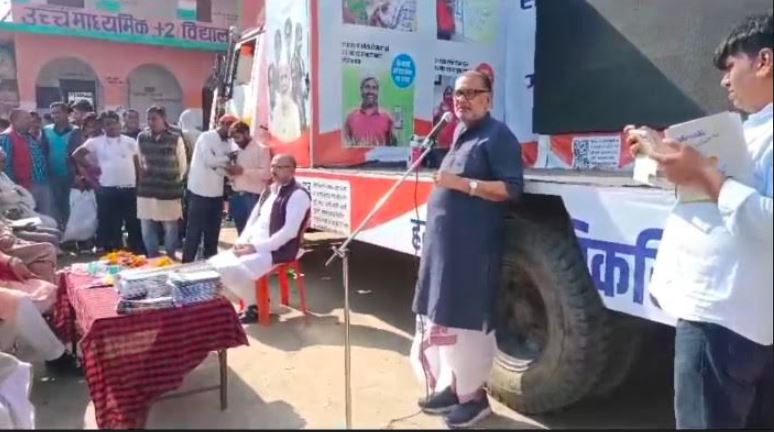 पूर्वी चंपारण जिले के कल्याणपुर में विकसित भारत संकल्प यात्रा के तहत् मोदी सरकार द्वारा संचालित किए गए कार्यक्रम में शंम्भुचक बाजार राजकीय मध्य विद्यालय शंम्भुचक के प्रांगण मे मोतिहारी सांसद राधामोहन सिंह को वर्तमान मुखिया अरिंजय कुमार सिंह ने अंगवशत्र देकर सम्मानित किया। वही सभा को संबोधित करते हुए पूर्व केंद्रीय मंत्री सह मोतिहारी सांसद राधामोहन सिंह ने कहा कि मोदी सरकार हर गरीब तबके के लिए सरकार द्वारा चलाए जा रहे हर सुविधा को मुहैया कराई जा रही है ताकि सभी का इसका फायदा मिल सके। वही इस कार्यक्रम में विधायक सचिन्द्र प्रसाद सिंह को मुखिया द्वारा सम्मानित किया गया। इस कार्यक्रम के मौके पर शियाबर सिंह, सुरेन्द्र साह नागेंद्र मिश्र इत्यादि लोग समेत भाजपा के सैकड़ों कार्यकर्ता मौजूद थे। साथ ही विकसित भारत संकल्प यात्रा कार्यक्रम में स्टाल लगाकर सैकड़ों मरिजों का निःशुल्क ईलाज करा कर दवा वितरण किया गया।