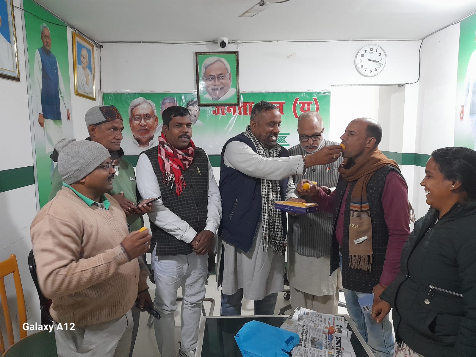 गया। मुख्यमंत्री नीतीश कुमार जी को जदयू का राष्ट्रीय अध्यक्ष बनने पर पार्टी कार्यालय गया में कार्यकर्ताओं ने एक दूसरे को मिठाई खिलाकर खुशी का इजहार किया है। जिला प्रवक्ता अवध बिहारी पटेल ने कहा की मुख्यमंत्री नीतीश कुमार जी को राष्ट्रीय अध्यक्ष बनने से गया जिला के कार्यकर्ता काफी उत्साहित हैं, उम्मीद है की नीतीश कुमार के नेतृत्व में पार्टी नई ऊंचाई तक पहुंचेगी। इस अवसर पर कार्यकर्ताओं ने उत्साहित होकर जोरदार नारा लगाया देश के नेता कैसा हो नीतीश कुमार जैसा हो। गया जिला में बधाई देने वाले में प्रदेश महासचिव अलेक्जेंडर खान ,कार्यालय प्रभारी डा0आसिफ जफर, प्रदेश सचिव अरुण पटेल, कुंडल वर्मा, सलाहकार समिति सदस्य बीरेंद्र शर्मा, जिला उपाध्यक्ष जितेंद्र दास, ज्योति सिंह ,जितेंद्र पंडित, मितंबरा होहड़े, मानपुर अध्यक्ष अजीत शर्मा,मोहन खान, अरविंद प्रियदर्शी, अरविंद वर्मा, पूनम कुशवाहा,कमलेश चंद्रवंशी ,रामबली विंद, बीरेंद्र तिवारी एवं अन्य कार्यकर्ता उपस्थित थे।