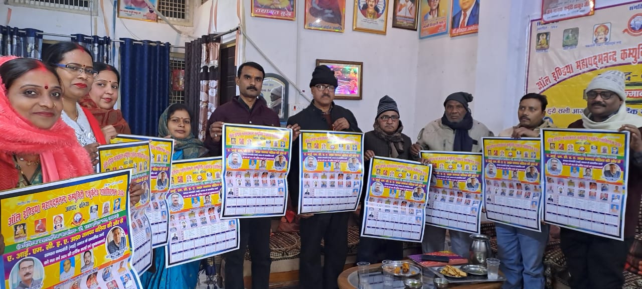 बलिया। ऑल इंडिया महापदम कम्युनिटी एजुकेटेड एसोसिएशन जनपद द्वारा दिनांक 31-12- 2023 को वार्षिक कैलेंडर का विमोचन जिलाध्यक्ष मा. नथुनी राम नंद और जिला सचिव मा. डा. सुनील कुमार ठाकुर के नेतृत्व में जिला संरक्षक मा. नित्यानंद ठाकुर जी, विधि परामर्शी मा. निर्मल ठाकुर एडवोकेट, संगठन सचिव मा. चन्द्रहास ठाकुर तथा महिला प्रकोष्ठ से जिलाध्यक्षा सुमन ठाकुर , जिला सचिव श्रीलता , कोषाध्यक्ष अनीता देवी , उपाध्यक्ष सावित्री देवी के द्वारा वार्षिक कैलेंडर वर्ष 2024 का विमोचन किया गया। इस महत्वपूर्ण अवसर पर प्रदेश उपाध्यक्ष माननीय उदय नारायणनंद जी और आजमगढ़ मंडल अध्यक्ष माननीय एल बी शर्मा की भी गरिमामयी उपस्थिति रही। इससे पूर्व आज ही AIMCEA जिलासचिव सुनील कुमार ठाकुर के अगुवाई में एल बी शर्मा, डा विरेन्द्र ठाकुर, संतोष कुमार ठाकुर, नथुनी राम नंद, लक्ष्मण ठाकुर द्वारा नगर पालिका अध्यक्ष संत कुमार गुप्ता से मिलकर जननायक कर्पूरी ठाकुर जी के नाम पर बलिया के किसी एक सड़क का नाम जननायक जी के नाम पर नामकरण करने संबंधी विषय पर भी विचार-विमर्श किया! जिसका नगर पालिका अध्यक्ष ने पूर्ण आश्वासन दिया।