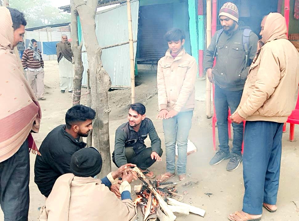 मोतिहारी : संपूर्ण पूर्वी चंपारण जिला तीन दिनो से भयंकर ठंड के प्रकोप मे है ,शीतलहर का प्रभाव लगातार जारी है।शुक्रवार को अचानक मौसम ने करवट ली।सुबह पांच बजे अचानक कोहरा छा गयाऔर ठंढ ने संपूर्ण जिले को अपने आगोश मे ले लिया।शनिवार को सूर्य देवता कुछ देर के लिये प्रकट हुये लेकिन रविवार दिनभर ठंढ ने कंपाया।सडको पर वाहनों की संख्या कम हुई।जगह जगह लोग अलाव जलाकर बैठे रहे।