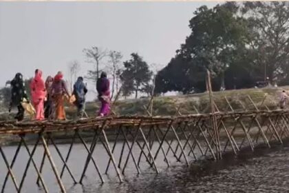 बिहार में विकास के मुंह पर तमाचा : चचरी पुल बना ग्रामीणों का सहारा, चंदा इक्ठ्ठा कर ग्रामीणों ने बनाया पुल
